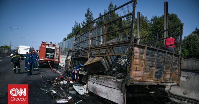 Θεσσαλονίκη: Φωτιά σε φορτηγό λίγο πριν τα διόδια Λαγκαδά