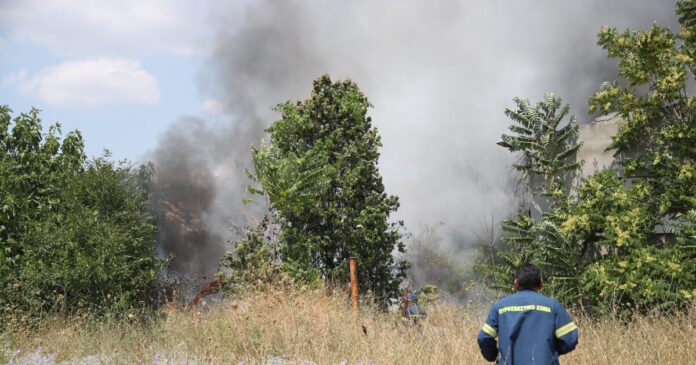Στο σημείο της φωτιάς στη Θεσσαλονίκη επιχειρούν 5 οχήματα με12 πυροσβέστες. Σύμφωνα με την Πυροσβεστική, η κατάσταση δεν εμπνέει ανησυχία και δεν φαίνεται να κινδυνεύουν άλλες περιοχές.