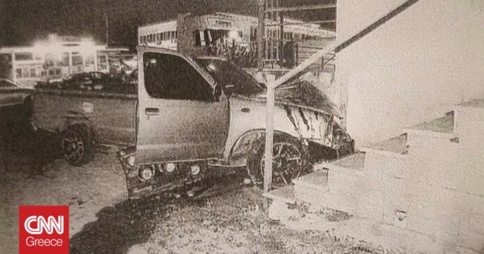 Το αυτοκίνητο όπως φαίνεται στις φωτογραφίες, είναι ακινητοποιημένο στον τοίχο του ξενοδοχείου, ενώ είναι ξεκάθαρη η οπή στο πίσω τζάμι από τη σφαίρα που δέχτηκε ο 16χρονος.