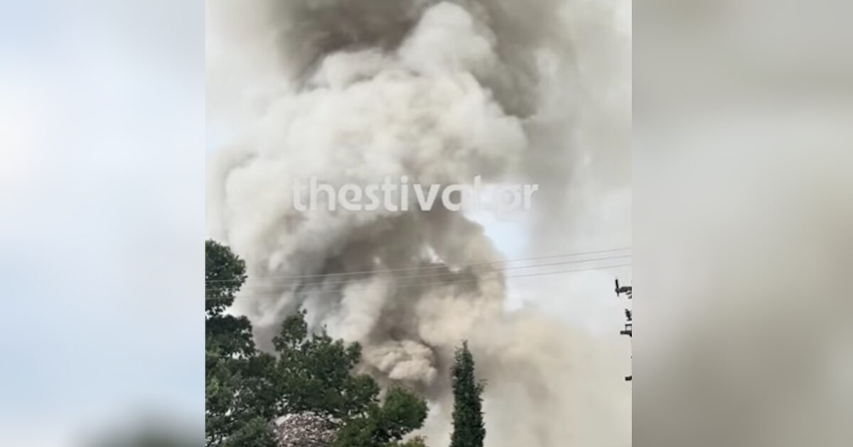 Η φωτιά εκδηλώθηκε σε υπαίθριο χώρο της επιχείρησης της Θεσσαλονίκης και καίγονται υλικά ανακύκλωσης και απορρίμματα.