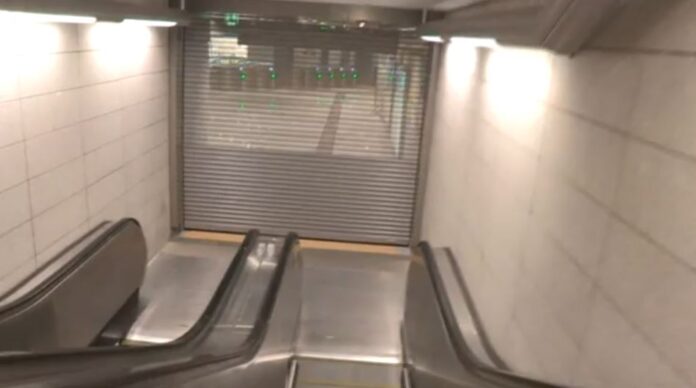 Από αυτόν τον σταθμό όποιος κατεβαίνει για να εισέλθει στον σταθμό, βλέπει κατεβασμένα ρολά.