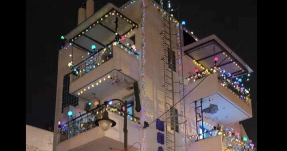 Όπως φαίνεται σε βίντεο που αναρτήθηκε στο TikTok, η πολυκατοικία στις Συκιές έχει γεμίσει με πολύχρωμα λαμπάκια, και είναι… έτοιμη για τα Χριστούγεννα παρά το ότι είναι ακόμη Σεπτέμβριος.