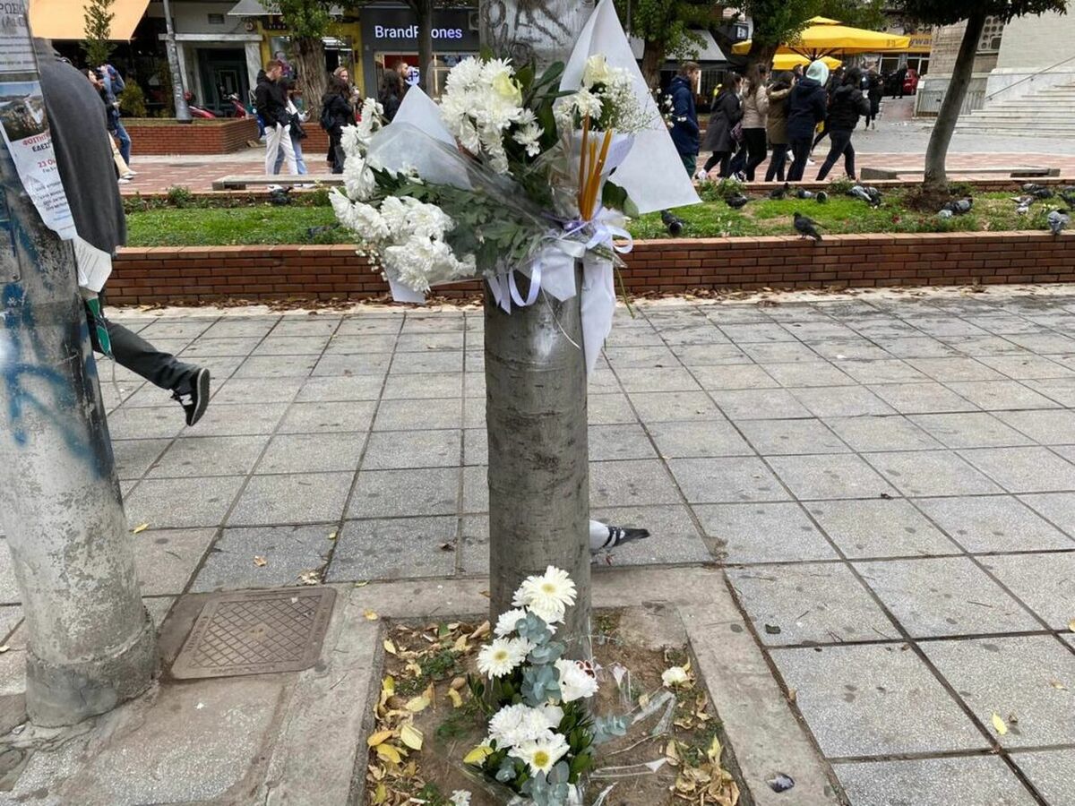 Φίλοι και συμφοιτητές αποχαιρετούν την 21χρονη που φοιτούσε στην Κτηνιατρική Σχολή του Αριστοτελείου Πανεπιστημίου Θεσσαλονίκης αφήνοντας λουλούδια και σημειώματα.