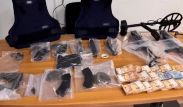 Επιπλέον, στο κρησφύγετό τους εντοπίστηκαν αλεξίσφαιρα γιλέκα, τρία όπλα, σχεδόν 80.000 ευρώ, ένα drone, το οποίο χρησιμοποιούσαν για να παρακολουθούν τα θύματά τους, αλλά και μία συσκευή γεωεντοπισμού, την οποία τοποθετούσαν στα οχήματα που παρακολουθούσαν.