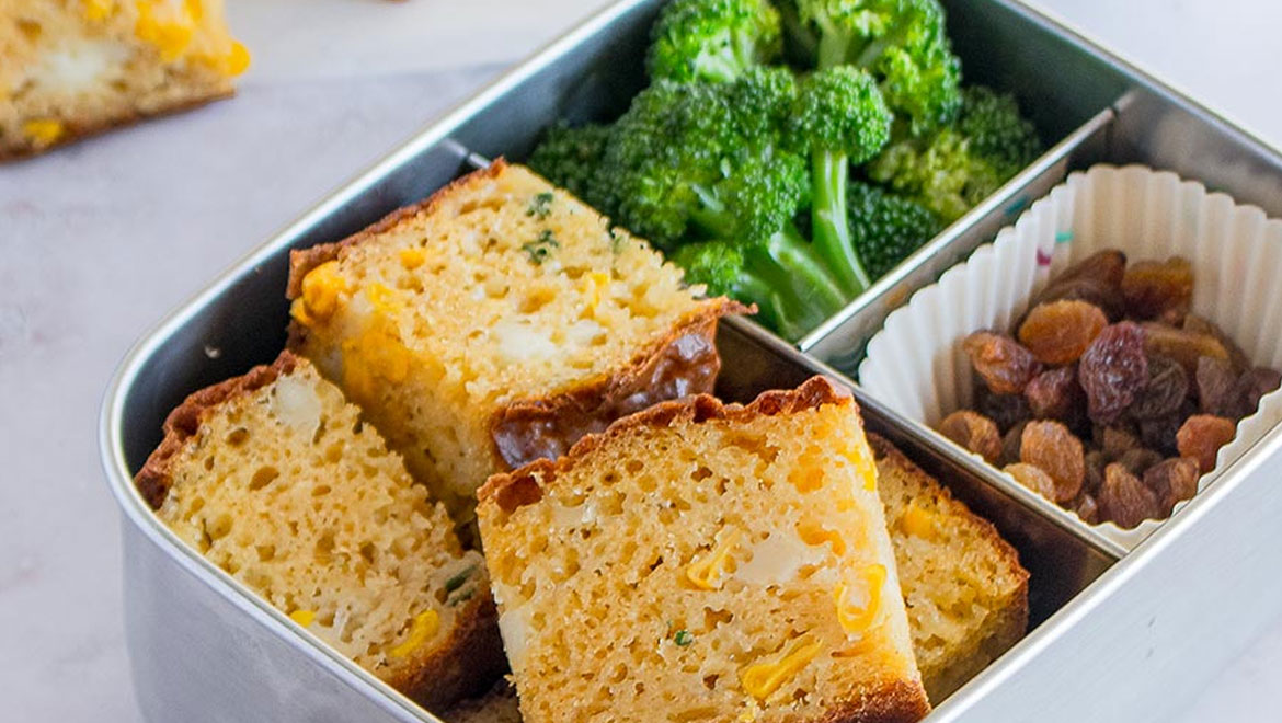 Αφράτο, νόστιμο και χορταστικό, αυτό το κέικ με καλαμποκάλευρο, γιαούρτι και τυριά είναι ιδανικό για το σχολικό κολατσιό ή ένα υγιεινό σνακ στο σπίτι.