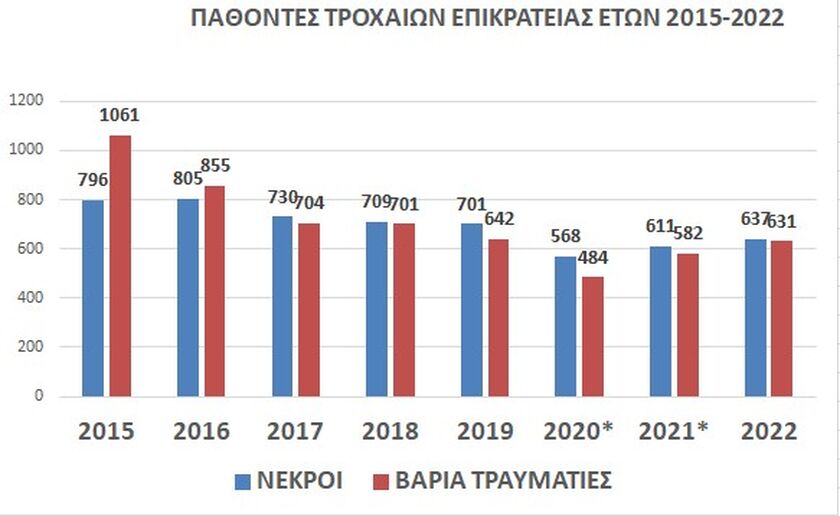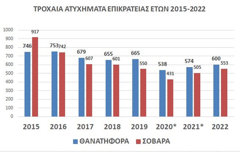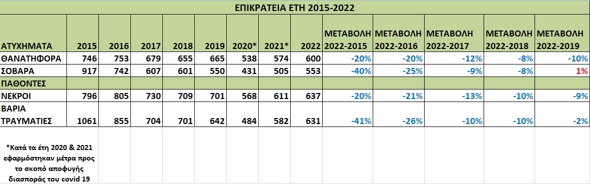 Το 2022 σημειώθηκε σημαντική μείωση τροχαίων ατυχημάτων.