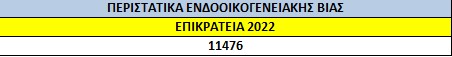 Σε ό,τι αφορά στη σύγχρονη μάστιγα της ενδοοικογενειακής βίας σημειώθηκαν 11.476 περιστατικά. Από αυτά τα 3.279 περιστατικά διαχειρίστηκαν τα 18 Γραφεία Ενδοοικογενειακής Βίας.
