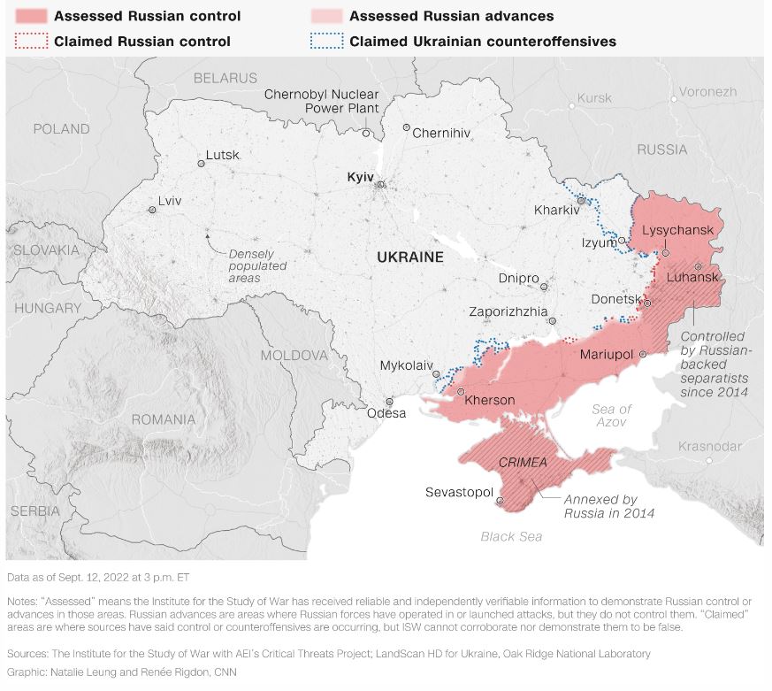 Στρατιωτικός αξιωματούχος του ΝΑΤΟ δήλωσε επίσης στο CNNi πως θεωρεί ότι ο Πούτιν θα πρέπει να επανεξετάσει τη θέση του μέχρι την επόμενη άνοιξη «εάν το ΝΑΤΟ παραμείνει ενωμένο για τα ενεργειακά προβλήματα του χειμώνα και εάν η Ουκρανία συνεχίσει τον αγώνα. Αλλά δεν θα διαπραγματευτεί νωρίτερα, καθώς είναι ένας κρύος χειμώνας το καλύτερό του όπλο».