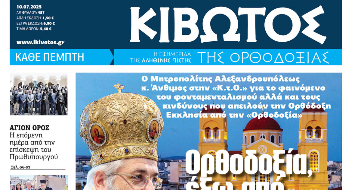 Την Πέμπτη, 10 Ιουλίου, κυκλοφορεί το νέο φύλλο της Εφημερίδας «Κιβωτός της Ορθοδοξίας»