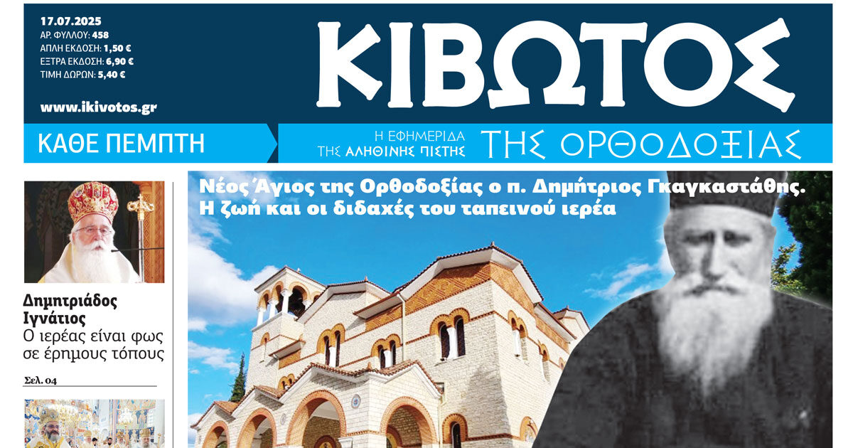 Την Πέμπτη, 17 Ιουλίου, κυκλοφορεί το νέο φύλλο της Εφημερίδας «Κιβωτός της Ορθοδοξίας».
