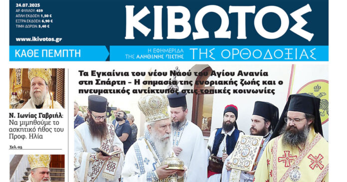 Την Πέμπτη, 24 Ιουλίου, κυκλοφορεί το νέο φύλλο της Εφημερίδας «Κιβωτός της Ορθοδοξίας»
