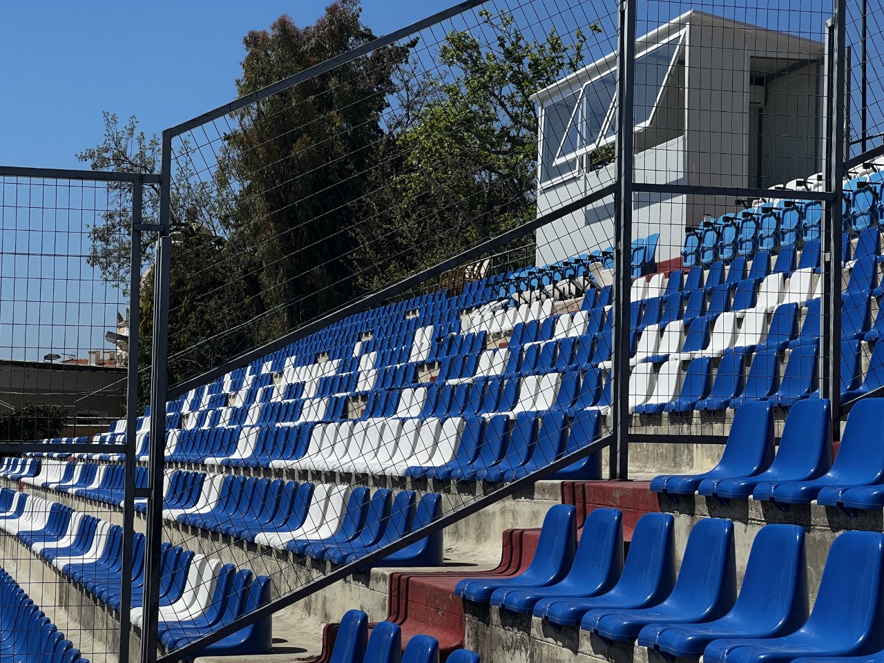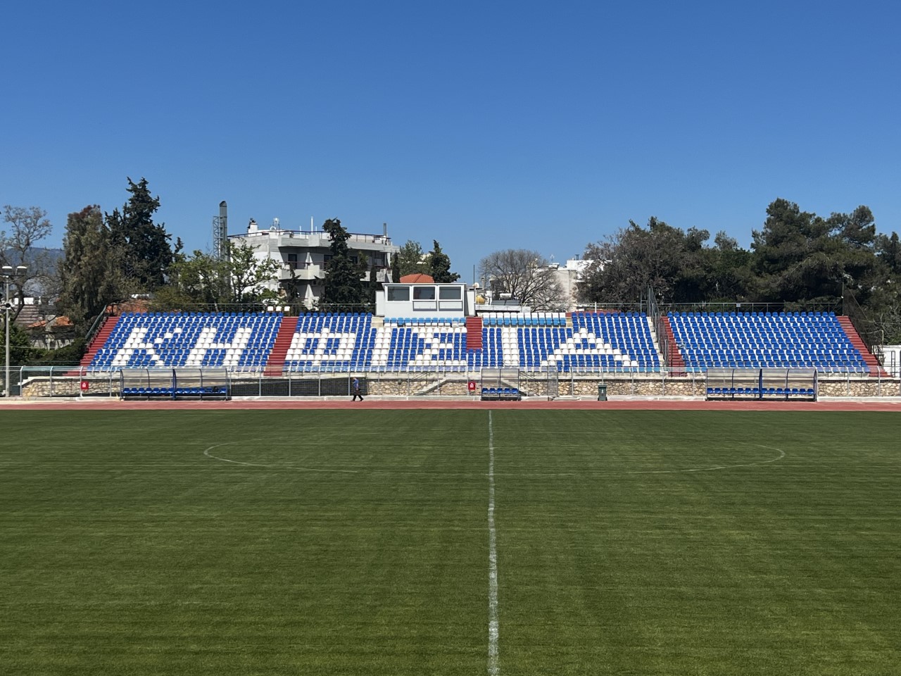 Η κεντρική κερκίδα του γηπέδου, με νέα μπλε και άσπρα καθίσματα, στα χρώματα της Κηφισιάς.