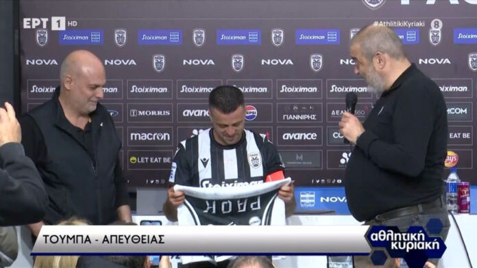 Πιο συγκεκριμένα ο Θανάσης Χατζόπουλος έδωσε στον Βιεϊρίνια μια φανέλα μπάσκετ του ΠΑΟΚ με το όνομα του 39χρονου, ενώ ο Πορτογάλος αποκάλυψε μια ιδιαίτερη ιστορία με τον πρόεδρο της “ασπρόμαυρης” ΚΑΕ.