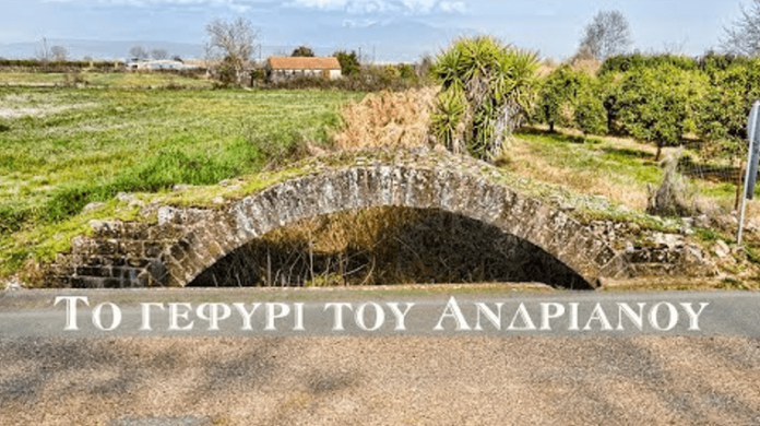 Στο χωριό Αγγελόκαστρο Αιτωλοακαρνανίας, κοντά στο σιδηροδρομικό σταθμό, βρίσκεται το γεφύρι του Ανδριανού.