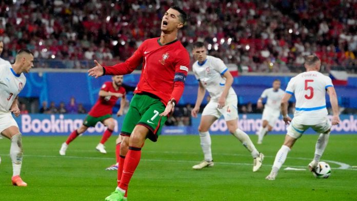 Ο μεγάλος αστέρας της Εθνικής Πορτογαλίας πήρε την κεφαλιά ανάμεσα από τα στόπερ της Τσεχίας, με την μπάλα να βρίσκει στο δοκάρι πριν ο Ζότα την στείλει στα δίχτυα, αλλά ήταν σε θέση offside.