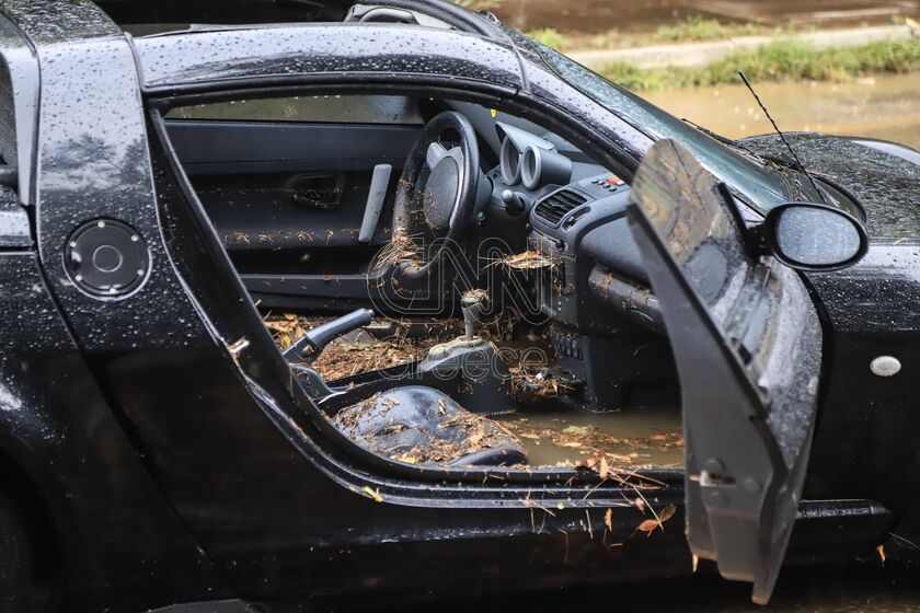 Λόγω της υπερχείλισης του χειμάρρου, ένα όχημα παγιδεύτηκε στα νερά, με τους τουρίστες από τη Βουλγαρία που βρίσκονταν μέσα σε αυτό να καλέσουν βοήθεια.
