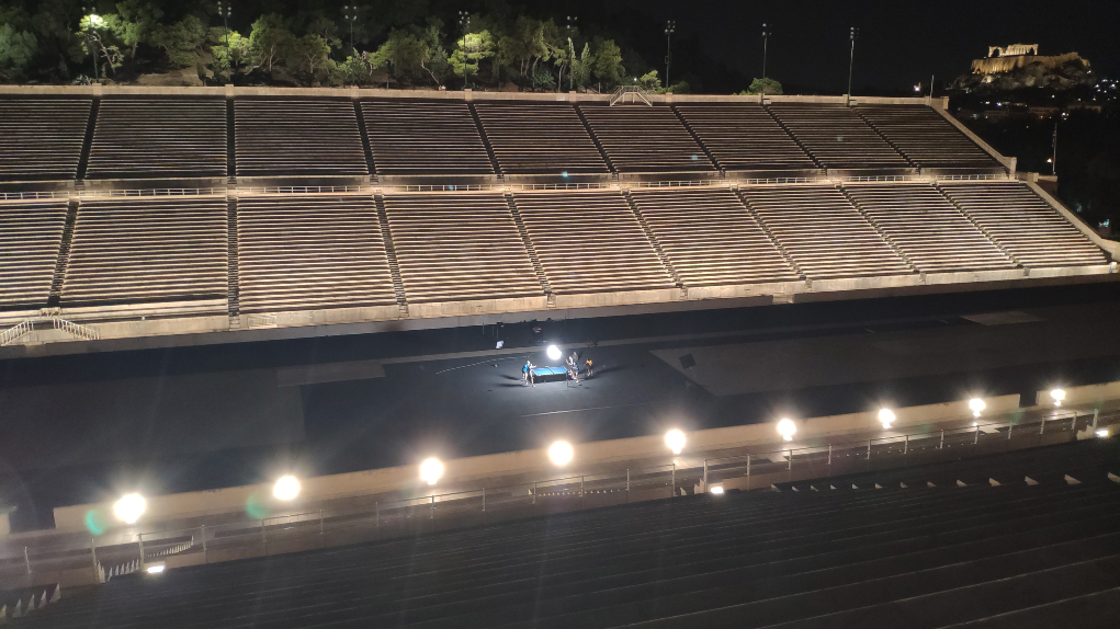 Σε μία υπέροχη βραδιά, όπου η μαγεία του Καλλιμάρμαρου φώτιζε το τοποθετημένο τραπέζι, τέσσερις αθλητές των εθνικών μας ομάδων, ο Παναγιώτης Γκιώνης, η Κωνσταντίνα Παρίδη, ο Κωνσταντίνος Αγγελάκης και η Ελισάβετ Τέρπου αντάλλαξαν χτυπήματα για αρκετές ώρες -ακόμα και μετά τα μεσάνυχτα ώστε να επιτευχθεί το ιδανικό αποτέλεσμα και να συνδυαστεί η παρουσία σ’ αυτόν τον εμβληματικό χώρο με προωθητικό βίντεο για το ολυμπιακό άθλημα κατά τον εορτασμό της Παγκόσμιας Ημέρα Επιτραπέζιας Αντισφαίρισης (World Table Tennis Day).