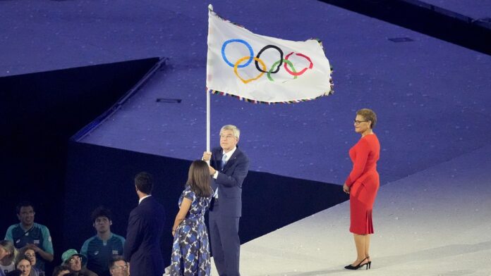 Το φινάλε της Τελετής Λήξης του “Stade de France” σημάνει την ολοκλήρωση των Ολυμπιακών Αγώνων του Παρισιού, αλλά και την έναρξη της 34ης Ολυμπιάδας. Ο πρόεδρος της ΔΟΕ, Τόμας Μπαχ, πήρε την Ολυμπιακή Σημαία από τη Δήμαρχου του Παρισιού, Αν Ινταλγκό, παραδίδοντάς την στη Δήμαρχο του Λος Άντζελες, Κάρεν Μπας.