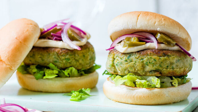 Στραγγίξτε τα ρεβίθια και τα σκουπίστε τα με χαρτί κουζίνας. Βάλτε τα σε ένα μίξερ μαζί με το κρεμμύδι, το σκόρδο, τον μαϊντανό, το κύμινο, τον κόλιανδρο, τη σκόνη τσίλι, το αλεύρι και λίγο αλάτι. Ανακατέψτε μέχρι να ομογενοποιηθούν και στη συνέχεια πλάστε με τα χέρια σας τέσσερα μπιφτέκια.