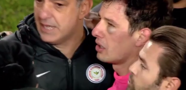 Λίγο μετά την επίθεση, ο διαιτητής σηκώνεται και του τοποθετείται πάγος στο μάτι. Στη συνέχεια κατευθύνεται με συνοδεία αστυνομικών δυνάμεων στα αποδυτήρια και σύμφωνα με τουρκικά μέσα φέρεται να λέει στους αστυνομικούς πως το λάθος είναι δικό του, μία κίνηση με αρκετή δόση ειρωνείας.