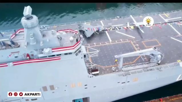 «Σήμερα το τουρκικό ναυτικό θα αποκτήσει το αεροπλανοφόρο για επιχειρήσεις αποβάσεων. Θα μεταφέρει μη επανδρωμένα αεροσκάφη, επιθετικά ελικόπτερα, άρματα μάχης, αμφίβια τεθωρακισμένα», είπε ο Ρετζέπ Ταγίπ Ερντογάν.