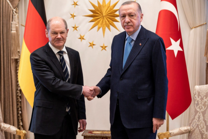 Στην Κωνσταντινούπολη βρέθηκε ο Γερμανός καγκελάριος Όλαφ Σόλτς, ο οποίος συναντήθηκε με τον Τούρκο πρόεδρο Ρετζέπ Ταγίπ Ερντογάν, ενώ μετά τη συνάντησή τους, ακολούθησαν από κοινού δηλώσεις τους και συνέντευξη Τύπου.