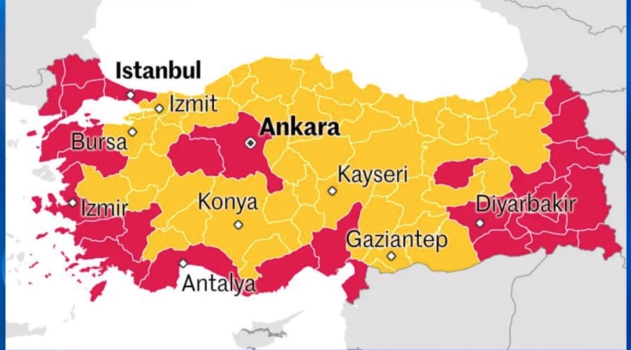 O επίμαχος χάρτης έδειχνε τα μισά νησιά του Αιγαίου, όπως η Ρόδος, η Σύμη, η Κως, η Λέρος, η Χίος και η Ικαρία να έχουν συμπεριληφθεί στις τουρκικές περιοχές που ψήφισαν τον αντίπαλο του Ρετζέπ Ταγίπ Ερντογάν.