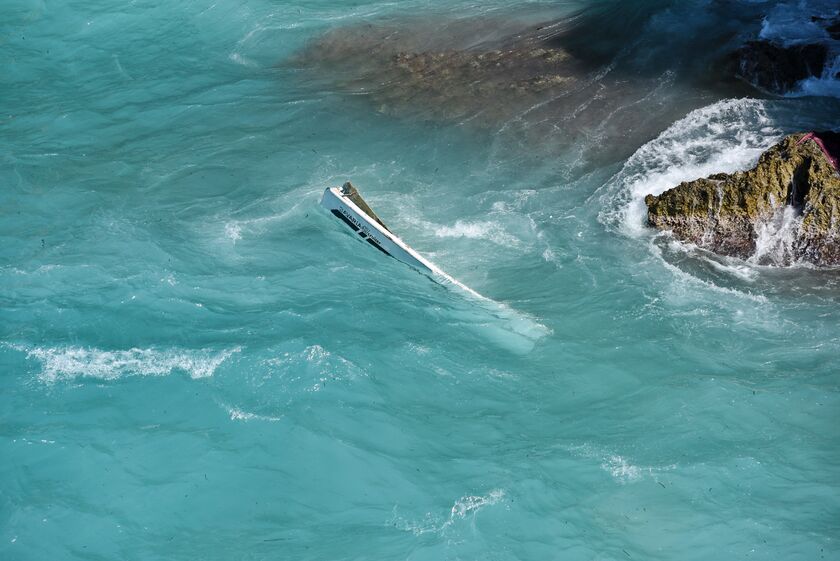 Όπως είπε ένας από τους διασωθέντες, ο χειριστής του σκάφους έπεσε στην θάλασσα λίγο πριν το ιστιοπλοϊκό προσκρούσει στα βράχια.