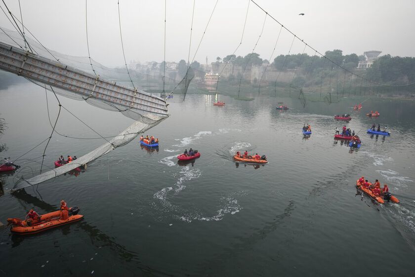 Η γέφυρα της εποχής της αποικιοκρατίας που συνέδεε τις όχθες του ποταμού Ματσού, στην πόλη Μόρμπι, ήταν γεμάτη κόσμο, εν μέσω του φεστιβάλ Ντιβάλι, της γιορτής «του φωτός», όταν κατέρρευσε το βράδυ της Κυριακής, με αποτέλεσμα εκατοντάδες άνθρωποι να πέσουν ο ένας πάνω στον άλλο και στα νερά του ποταμού από ύψος κάπου δέκα μέτρων.