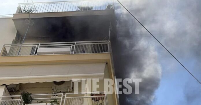 Παράλληλα ένα μικρό παιδί από άλλο όροφο του κτιρίου μεταφέρθηκε στο νοσοκομείο με αναπνευστικά προβλήματα λόγω εισπνοής καπνού.