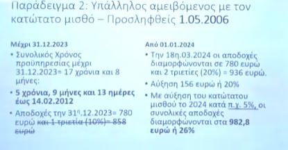 - Με αύξηση του κατώτατου μισθού το 2024 κατά πχ. 5% οι συνολικές αποδοχές διαμορφώνονται στα 982, 8 ευρώ ή 26%