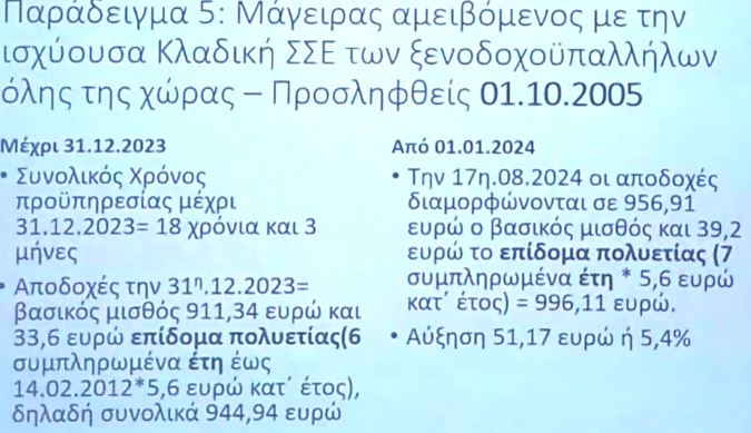 Παράδειγμα 5: Μάγειρας αμειβόμενος με τη ισχύουσα Κλαδική ΣΣΕ των ξενοδοχοϋπαλλήλων όλης της χώρας-Προσληφθείς 0.1.10.2005