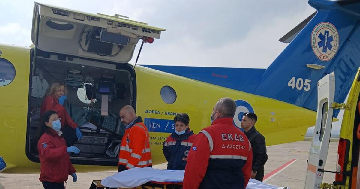 Ο ασθενής, διασωληνωμένος και σε σταθερή κατάσταση, αφίχθη στη Θεσσαλονίκη, διακομίστηκε με Κινητή Ιατρική Μονάδα του ΕΚΑΒ στο Γενικό Νοσοκομείο Θεσσαλονίκης «Γ. Παπαγεωργίου», όπου εισήχθη στη Μονάδα Εντατικής Θεραπείας (ΜΕΘ) για περαιτέρω νοσηλεία.