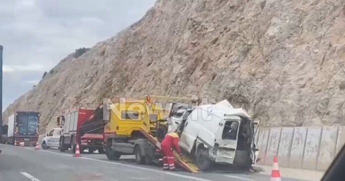 Από τη σύγκρουση τραυματίστηκε ο οδηγός του βαν, ο οποίος εγκλωβίστηκε μέσα στο όχημα και χρειάστηκε η συνδρομή της Πυροσβεστικής.