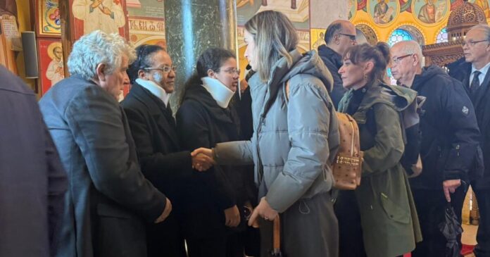 Με δάκρυα στα μάτια γονείς του και η αδερφή του έφτασαν στον ιερό ναό του Αγίου Γεωργίου στο Ψυχικό, ενώ όλοι οι παραβρισκόμενοι κρατούν ένα λευκό τριαντάφυλλο στο χέρι για να αποχαιρετήσουν τον Σωτήρη που έσβησε στο τροχαίο στη Λούτσα.