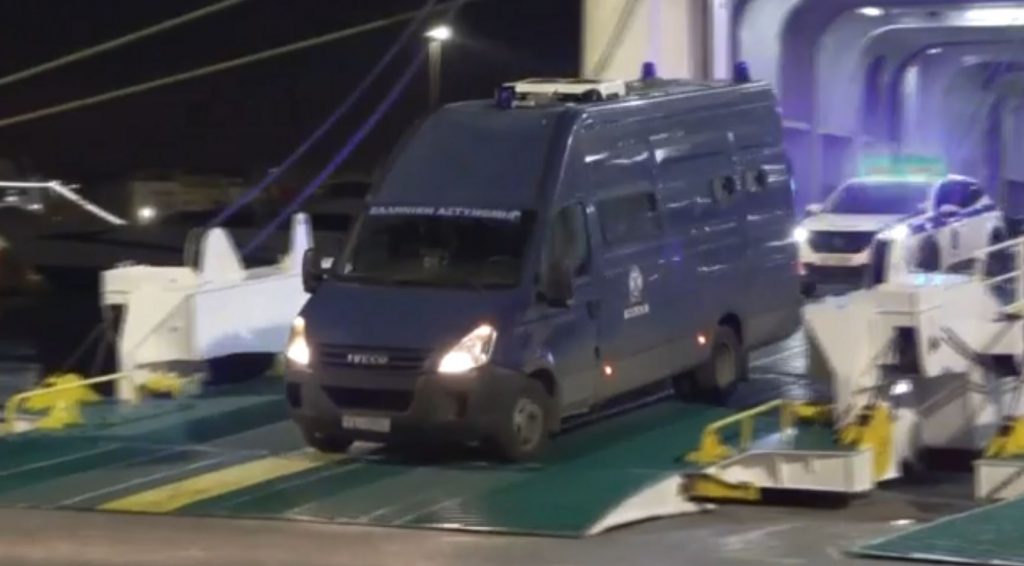 Λίγο πριν τις 7 το πρωί του Σαββάτου, η κλούβα του Μεταγωγών εισήλθε στο πλοίο που είχε ήδη φτάσει στον Πειραιά από την Κρήτη, και παρέλαβε τον 45χρονο, που σκότωσε τον 22χρονο Παναγιώτη.
