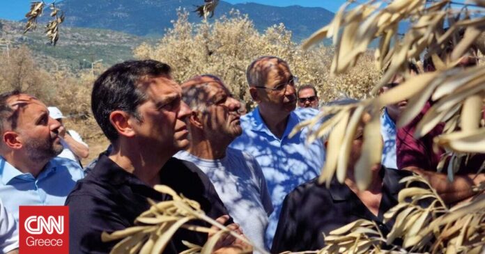 Νωρίτερα, ο Αλέξης Τσίπρας είχε συναντηθεί με τους αγρότες και τους καλλιεργητές που είδαν την περιουσία τους να γίνεται στάχτη.