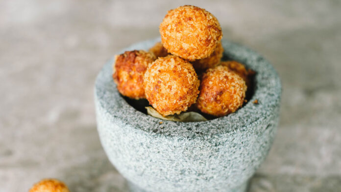 Χτυπάτε τα ασπράδια σε σφιχτή μαρέγκα με λίγο αλάτι. Τα ανακατεύετε με τα τυριά και το κορν φλάουρ. Πλάθετε το μίγμα σε μικρά μπαλάκια, περίπου στο μέγεθος μικρού καρυδιού και τα βάζετε στο ψυγείο για μερικές ώρες. Ζεσταίνετε το ελαιόλαδο σετηγάνι ή φριτέζα και τα τηγανίζετε σε δυνατή φωτιά μέχρι να ροδοκοκκινίσουν. Τα βγάζετε με τρυπητή κουτάλακαι τα αφήνετε για λίγο σε απορροφητικό χαρτί κουζίνας. Τα σερβίρετε ζεστά.