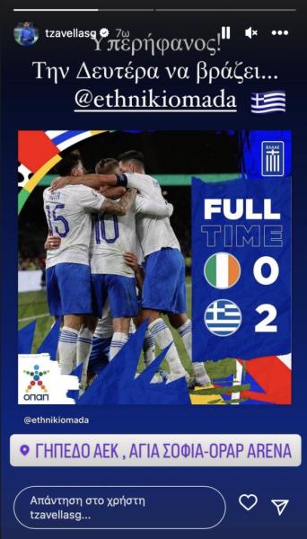 Ο διεθνής κεντρικός αμυντικός σε ανάρτηση που έκανε στον προσωπικό του λογαριασμό στο instagram ανέφερε πως είναι περήφανος μετά την νίκη της Εθνικής Ελλάδας κόντρα στην Ιρλανδία και ζήτησε από τους φιλάθλους να γεμίσουν την “OPAP Arena” τη Δευτέρα στο ματς με την Ολλανδία.