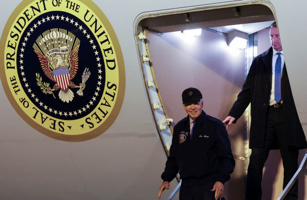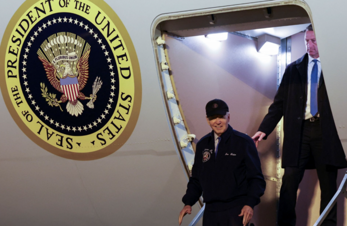 Ο Τζο Μπάιντεν κατεβαίνει αργά και προσεκτικά από τη σκάλα του αεροπλάνου, μέχρι να επιβιβαστεί στο αυτοκίνητο που θα τον μεταφέρει στην οικογενειακή του κατοικία στο Ντέλαγουερ.