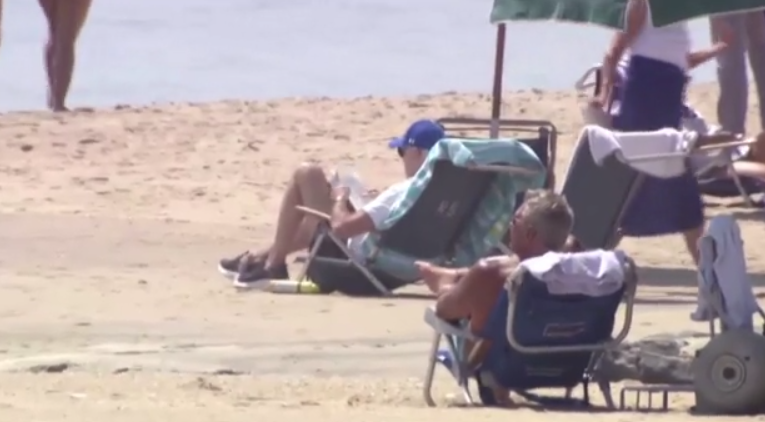 Παίρνει την καρέκλα της παραλίας κάθεται μπροστά στην θάλασσα ενώ είναι με την σύζυγο του Τζίλ.