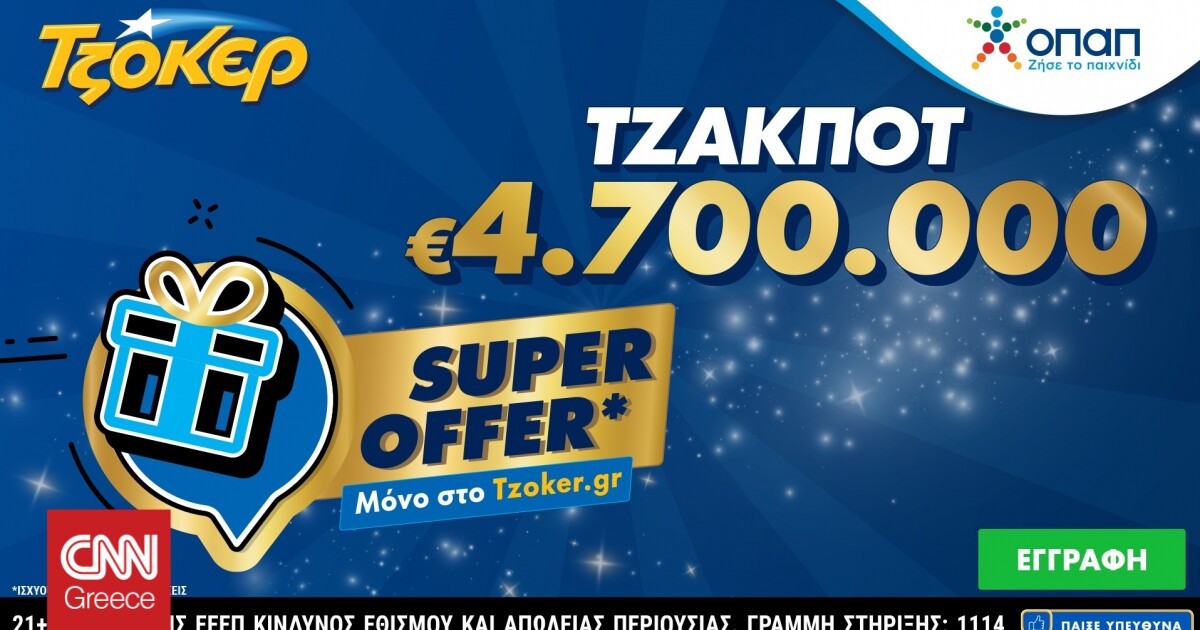 Το ΤΖΟΚΕΡ μοιράζει απόψε 4,7 εκάτ. ευρώ με «Super Offer» για τους online παίκτες – Κατάθεση δελτίων έως τις 21:30