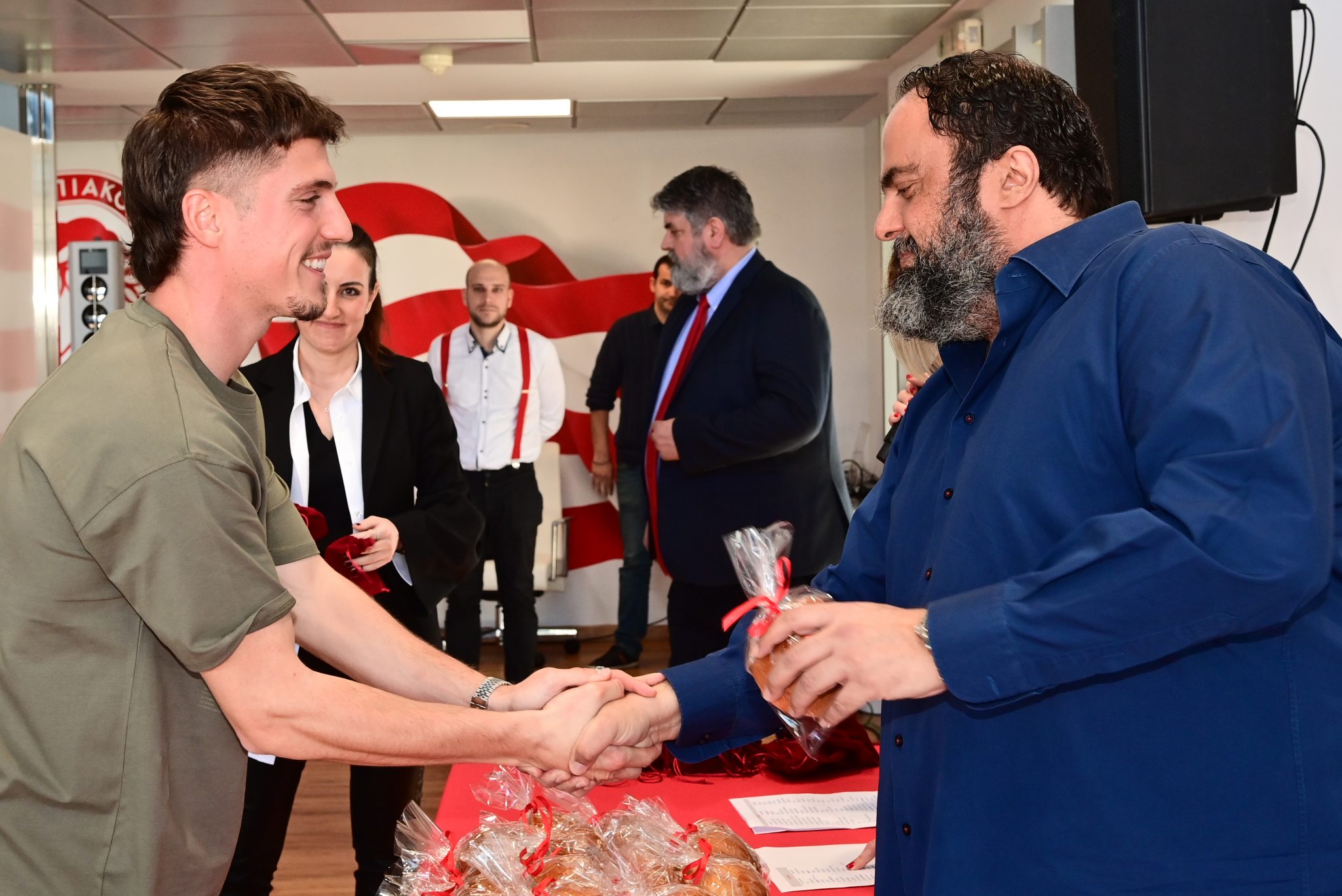 Μετά το γεύμα της ομάδας, ο Βαγγέλης Μαρινάκης συνομίλησε με τους τέσσερις νέους ποδοσφαιριστές του Ολυμπιακού: Τους Ροντινέι, Ραμόν, Κανός και Μπουτούτσι. Τους μίλησε για την Ιστορία του Ολυμπιακού, τη σημασία της ομάδας για την κοινωνία και την Ελλάδα και το πνεύμα νικητή που είναι πάντα απαραίτητο για να φορά κάποιος την «ερυθρόλευκη» φανέλα.