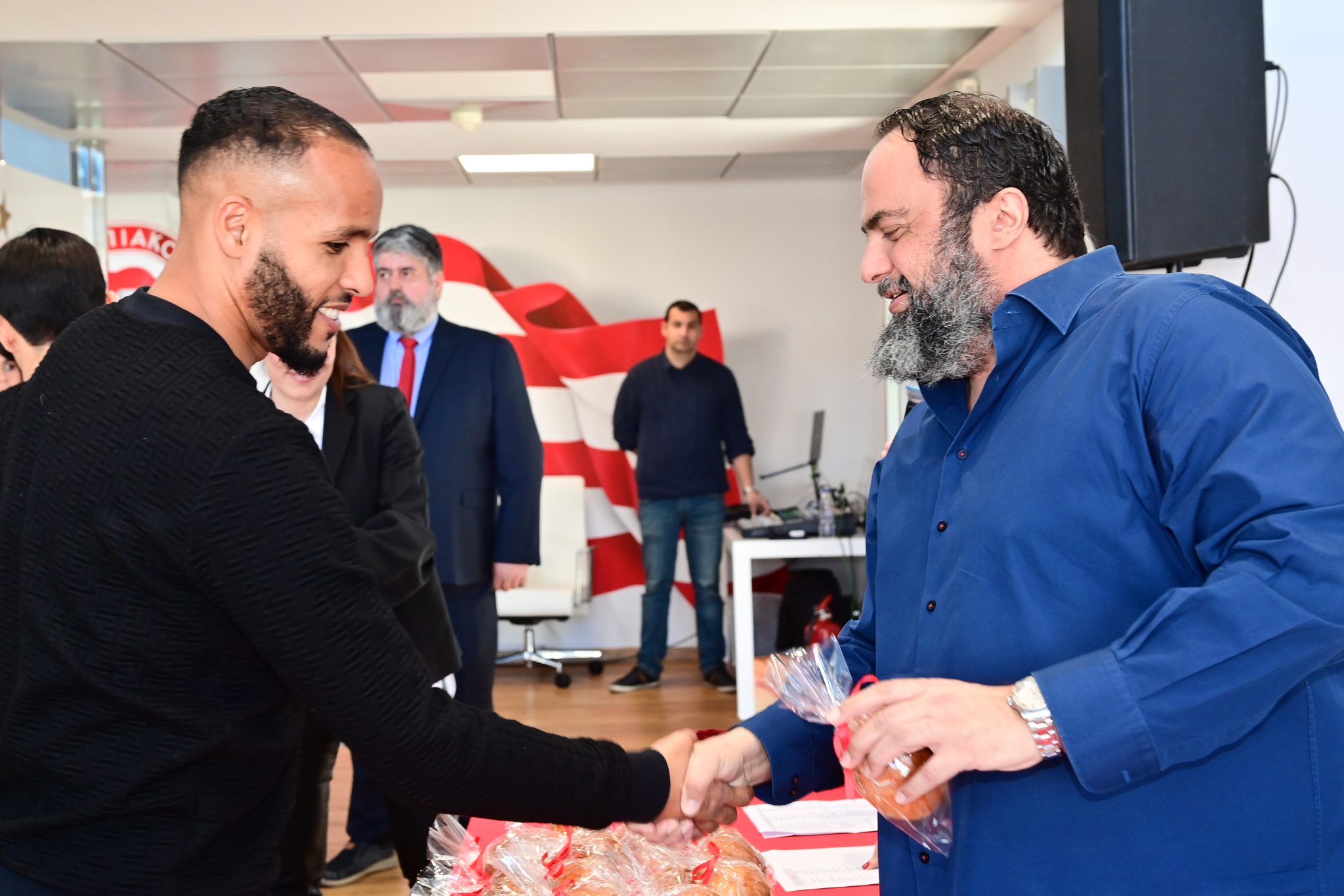«Είμαι ιδιαίτερα χαρούμενος, μετά από, πόσα χρόνια είναι, που λόγω covid βρισκόμαστε πάλι όλοι μαζί για την κοπή της πίτας, όπως κάναμε τα προηγούμενα χρόνια. Και είναι καλό γιατί από αυτή τη δοκιμασία με τον covid και με πρωτόγνωρες καταστάσεις που είδαμε, είμαστε όλοι μαζί ξανά, χωρίς απώλειες. Γιατί από αυτή την πανδημία είχαμε και πολλές απώλειες όλοι μας. Είτε σε οικογένειές μας, είτε σε φίλους μας, σε συγγενικά πρόσωπα. Είμαι χαρούμενος που σας βλέπω όλους εδώ ξανά. Φίλους, συνεργάτες, τους παίκτες μας, το προπονητικό τιμ και όλη την οικογένεια του Ολυμπιακού. Όπως είμαστε σήμερα σαν ομάδα, να συνεχίσουμε με νίκες και στο τέλος του πρωταθλήματος μετά τα play offs να είμαστε Πρωταθλητές. Πιστεύω ότι μπορείτε. Το έχετε δείξει αυτό και στους αγώνες που είχαμε με τις μεγάλες ομάδες του πρωταθλήματος και πιστεύω ότι πλέον είναι στο χέρι μας να κερδίσουμε τα υπόλοιπα ματς και να κερδίσουμε και το Πρωτάθλημα, αλλά και το Κύπελλο. Για εμάς ο πρώτος στόχος είναι το Πρωτάθλημα, αλλά και το Κύπελλο για πολλούς και διάφορους λόγους πρέπει να το ξανακερδίσουμε.