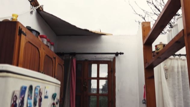 Πέρα από την σκεπή, ζημιές έχει υποστούν και οι τοίχοι του σπιτιού που προς το παρόν παραμένουν όρθιοι. Η μανία της φύσης ήταν τέτοια με τον θερμοσίφωνα να παρασύρεται από τους ισχυρούς ανέμους και ακόμα να μην έχει εντοπιστεί.