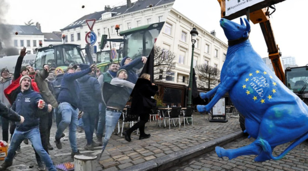 Χιλιάδες αγρότες από ολόκληρη την Ευρώπη έφτασαν σε απόσταση αναπνοής από τα κτίρια των ευρωπαϊκών θεσμών, όπου ισχυρές δυνάμεις της αστυνομίας τους σταμάτησαν.