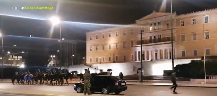 Κι όμως, δεν ταξίδεψε κανείς στο χρόνο. Απλώς έλαβε χώρα η πρόβα του ιππικού για την παρέλαση της 25ης Μαρτίου που θα γίνει το Σάββατο στην Αθήνα.