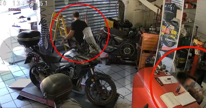 Σε βίντεο ντοκουμέντο που εξασφάλισε το Star, φαίνονται οι κινήσεις του νεαρού ληστή εντός του συνεργείου, ο οποίος αθόρυβα και με προσεκτικές κινήσεις περνάει απαρατήρητος από τον ιδιοκτήτη της επιχείρησης.