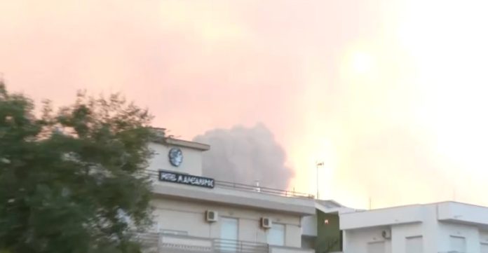 Στο έλεος της πύρινης κόλασης βρίσκεται η Νέα Αγχίαλος, μια περιοχή 5.000 κατοίκων, όπου προχωρά η επιχείρηση ολοκληρωτικής εκκένωσης, στην οποία συμμετέχουν λεωφορεία, ασθενοφόρα αλλά και ιδιωτικά σκάφη. Ήδη έχει εκκενωθεί το 80% της περιοχής, με τις μεγάλες εκρήξεις που έχουν σημειωθεί να είναι δύο.