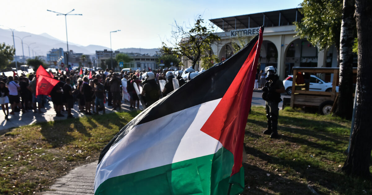 Στην οδό Πυράσσου υπήρξε επεισόδιο μεταξύ των διαδηλωτών υπέρ της Παλαιστίνης και των δυνάμεων των ΜΑΤ όταν οι πρώτοι επιχείρησαν να προσεγγίσουν προς τον φράκτη του λιμανιού.